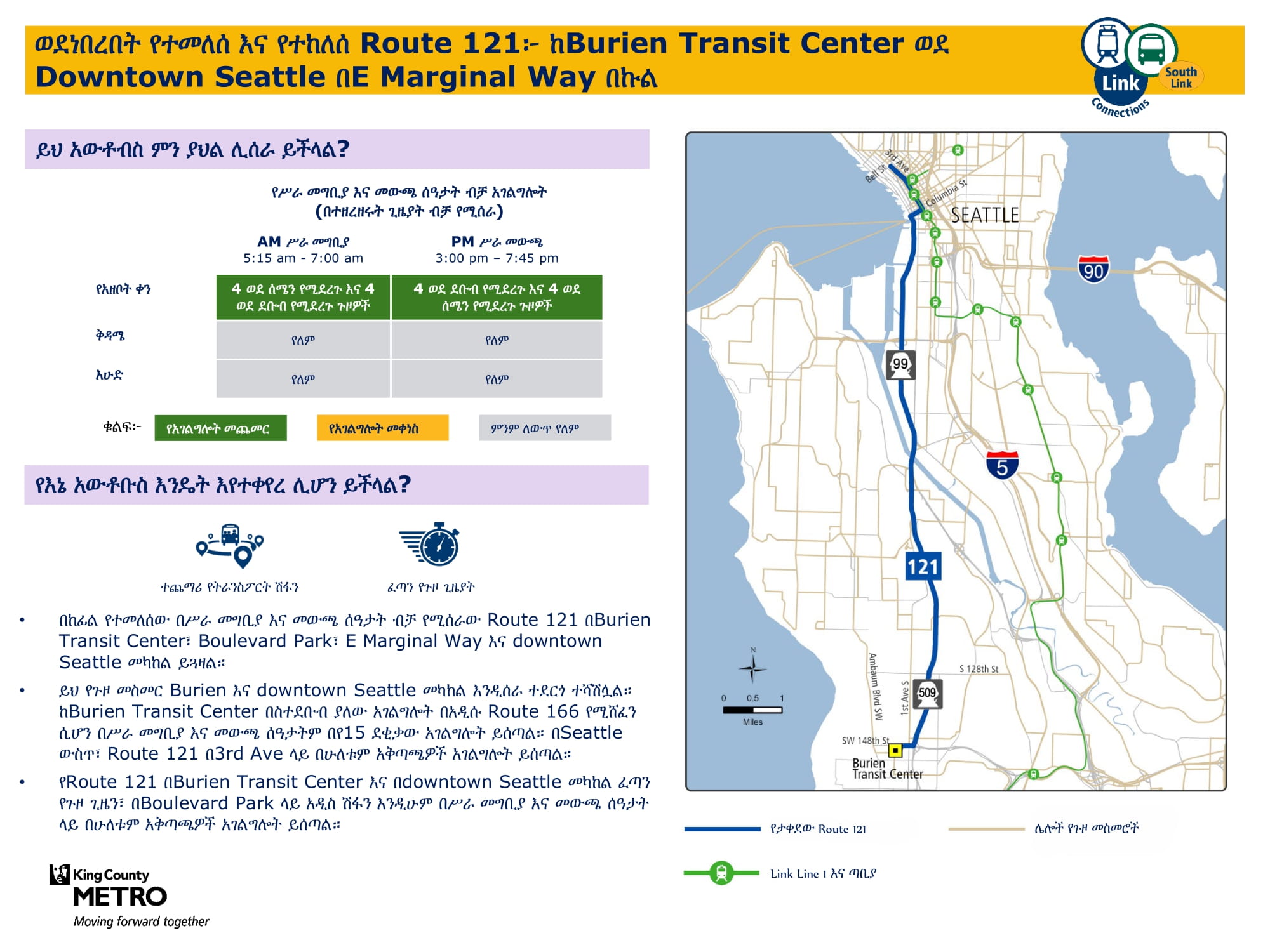 | 121 የሚያገለግለው Burien፣ የከተማው መሃል Seattle |