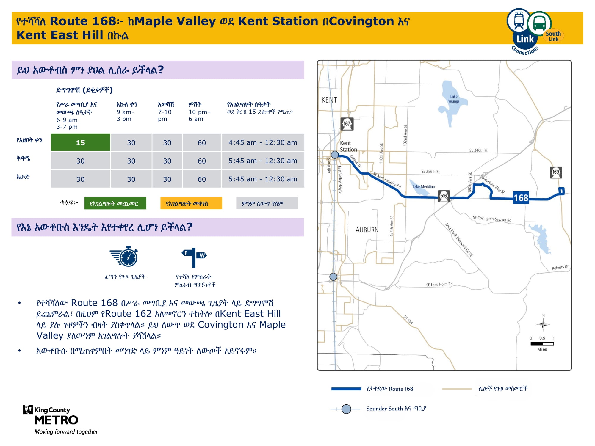 | 168 የሚያገለግለው Kent፣ Covington፣ Maple Valley |