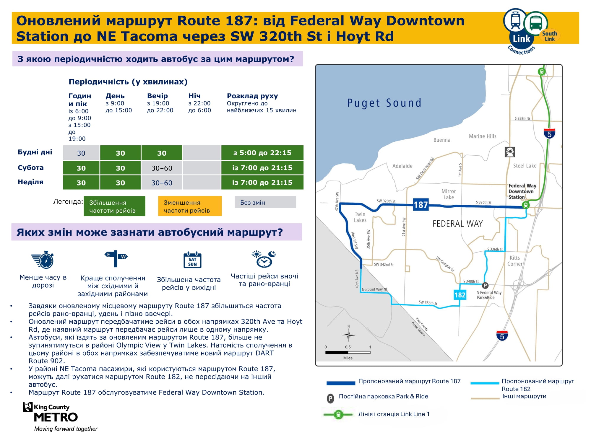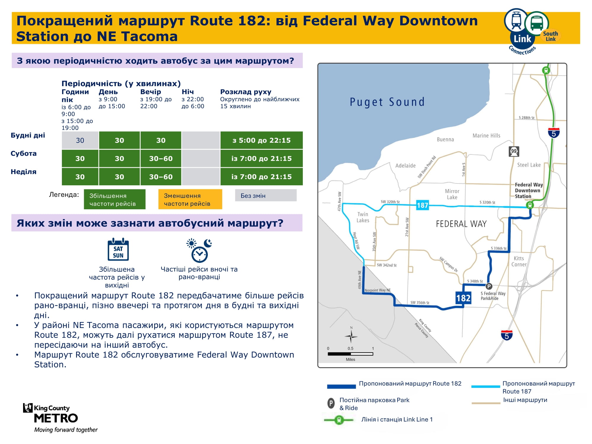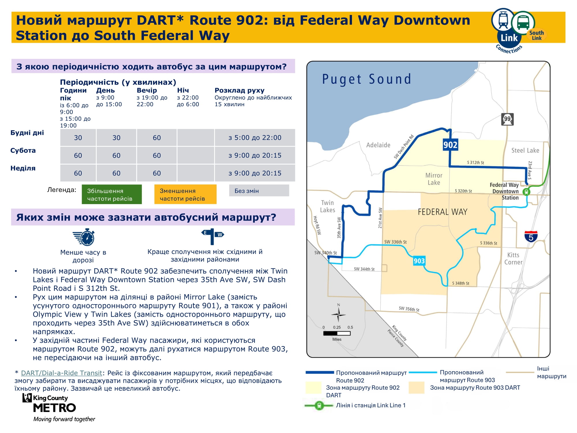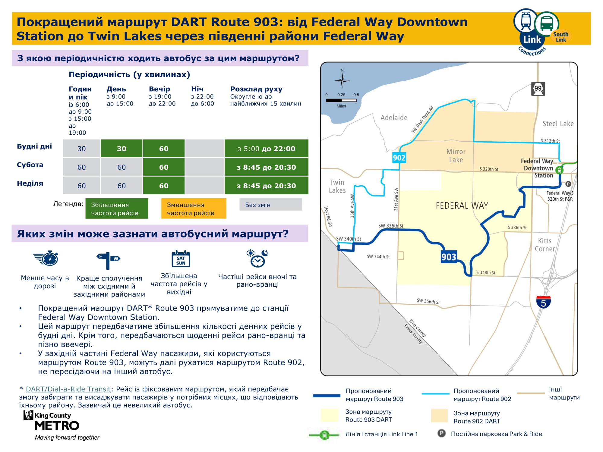 Federal Way Downtown і Kent Des Moines. Надалі забезпечуватиме