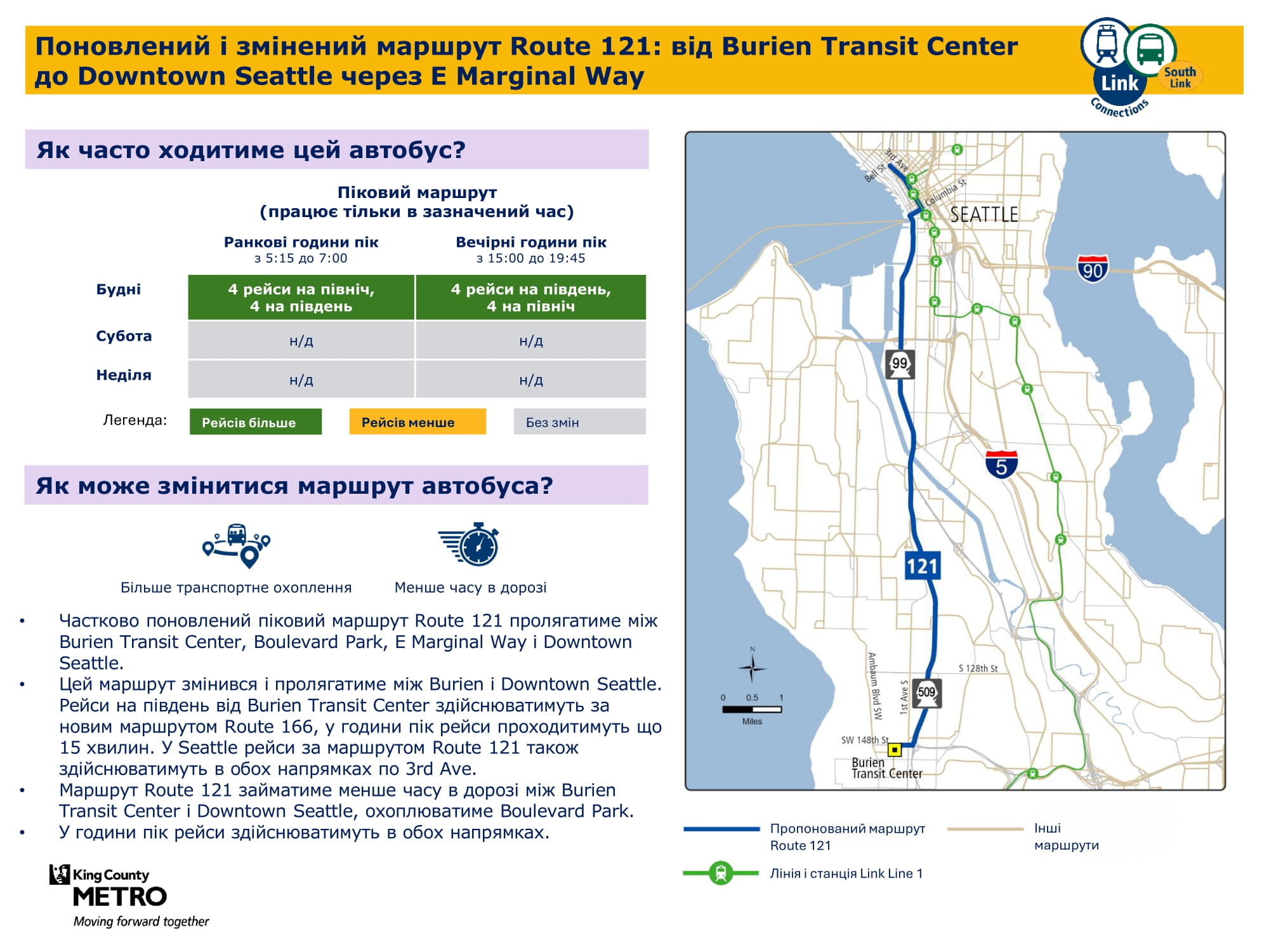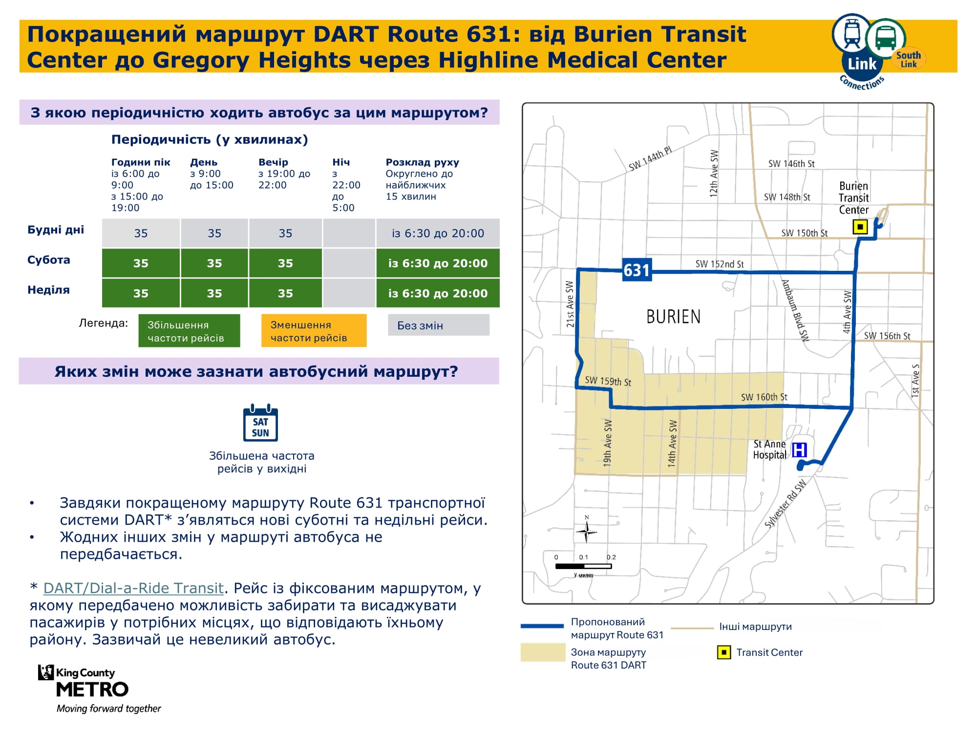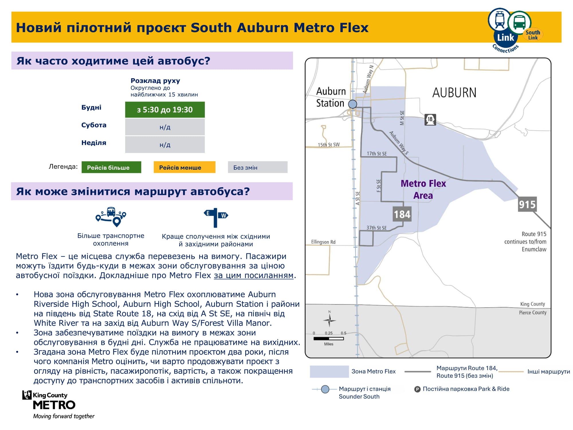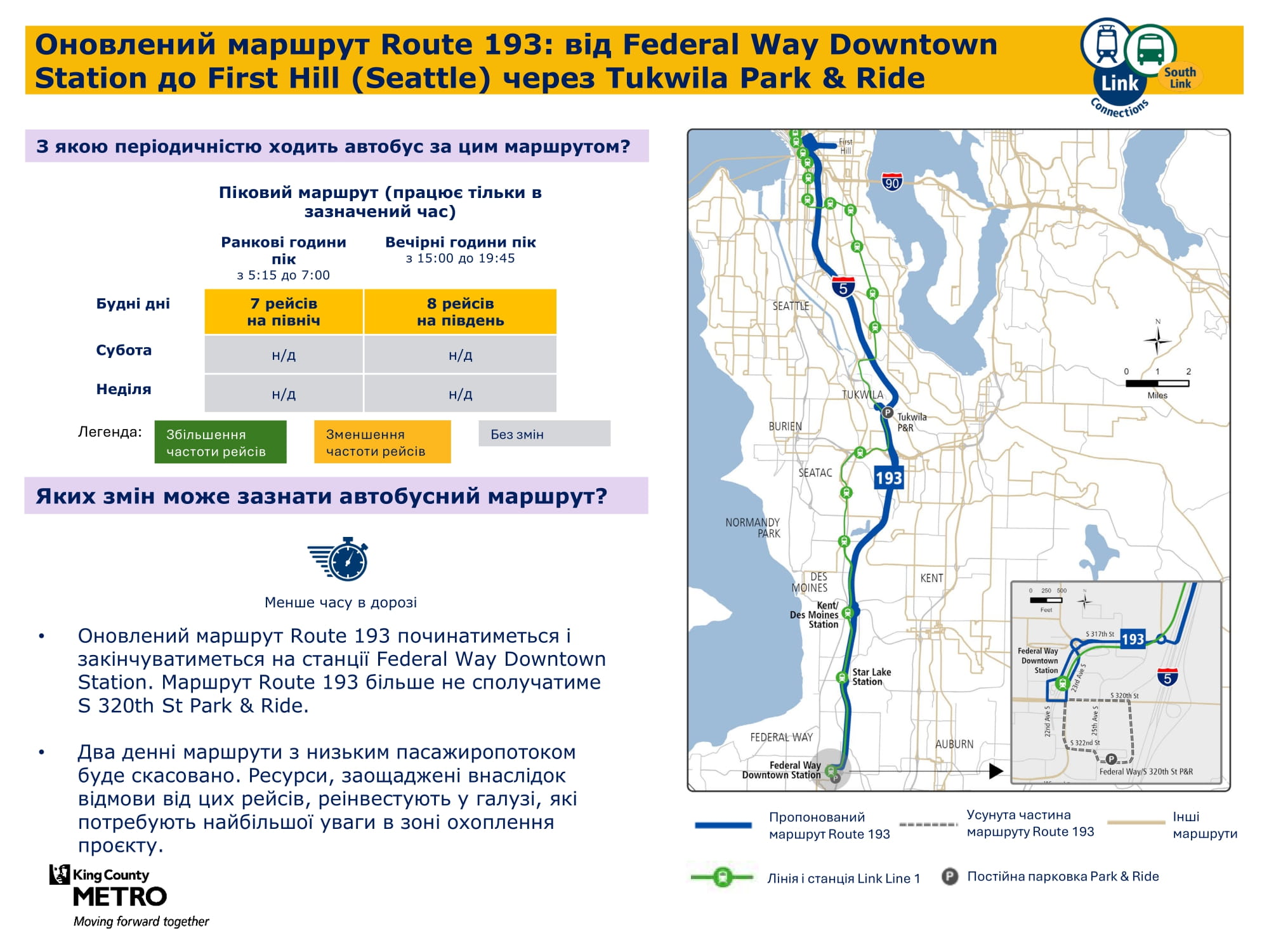 Federal Way Downtown і Kent Des Moines. Надалі забезпечуватиме