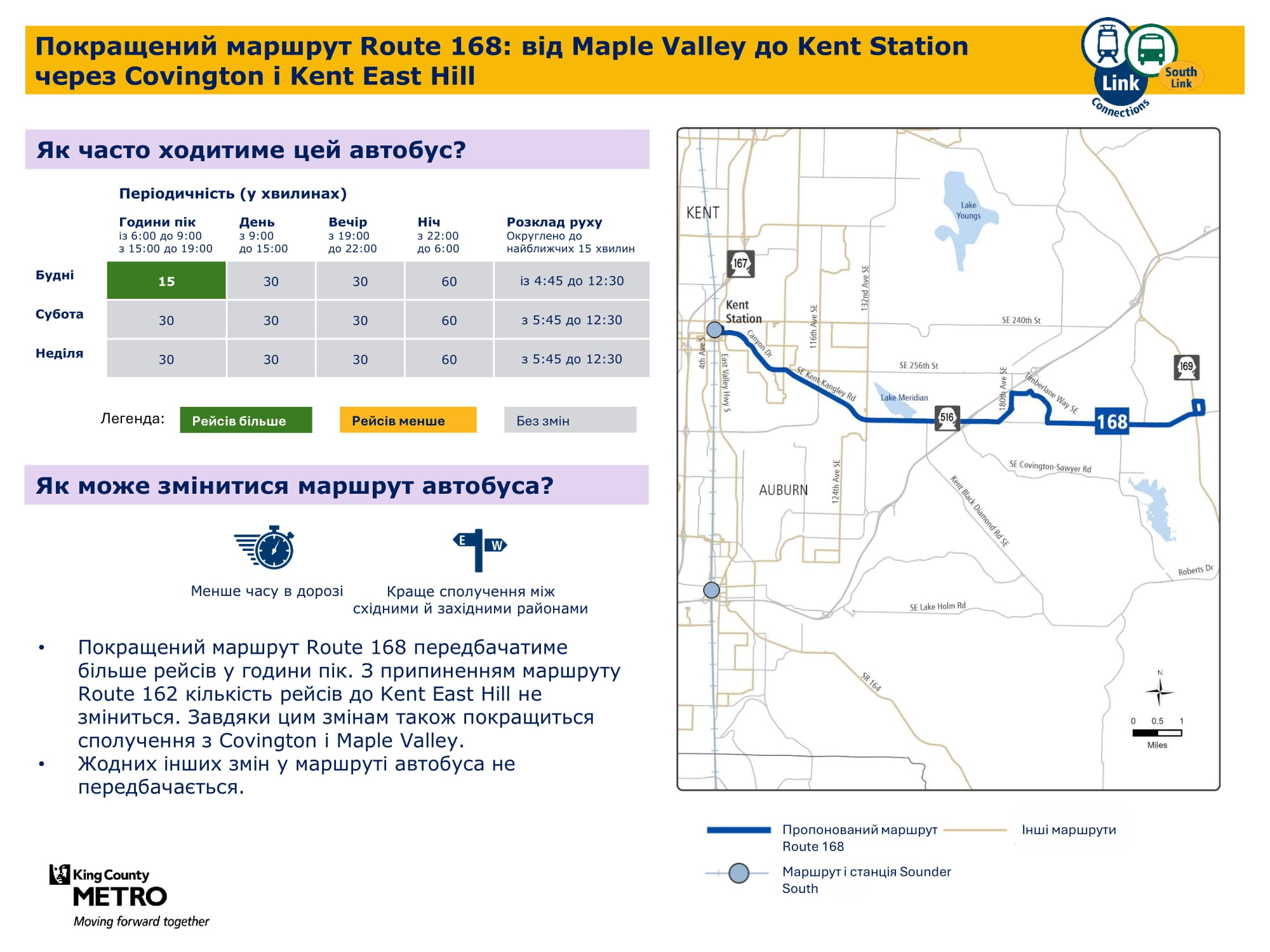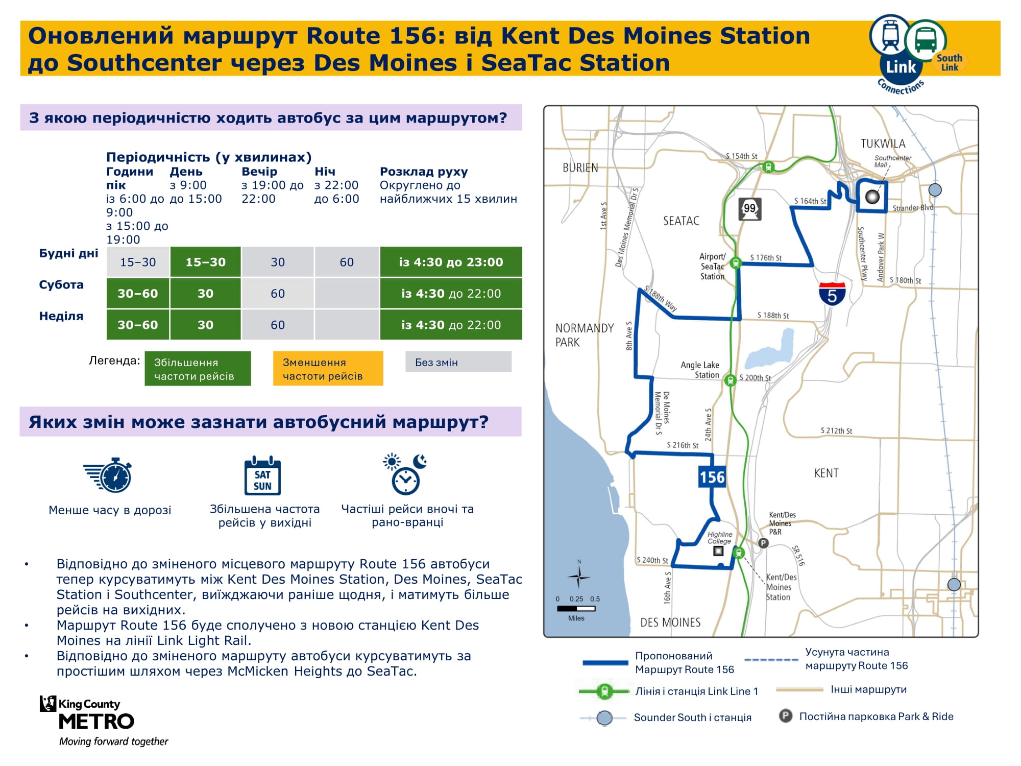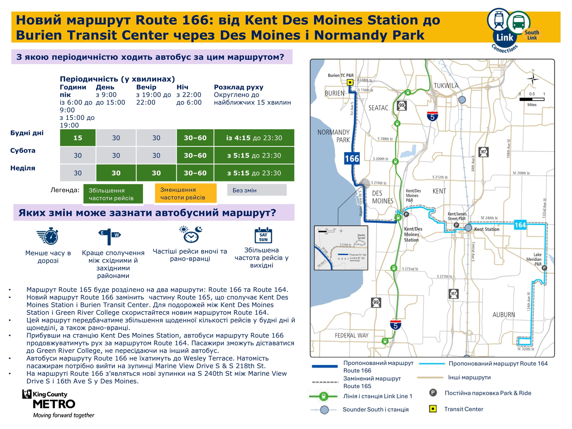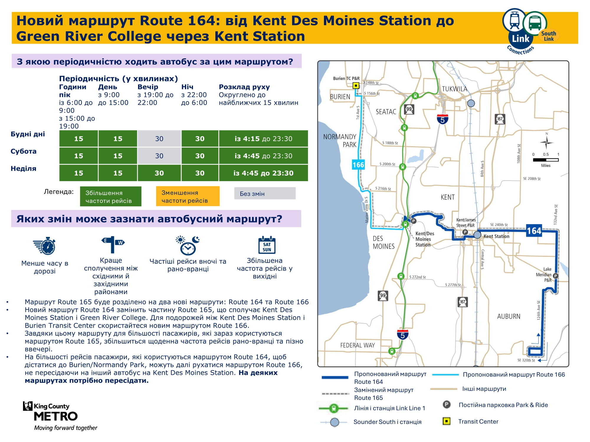 станції Kent Des Moines. Усі рейси стануть частиною маршруту 164 для