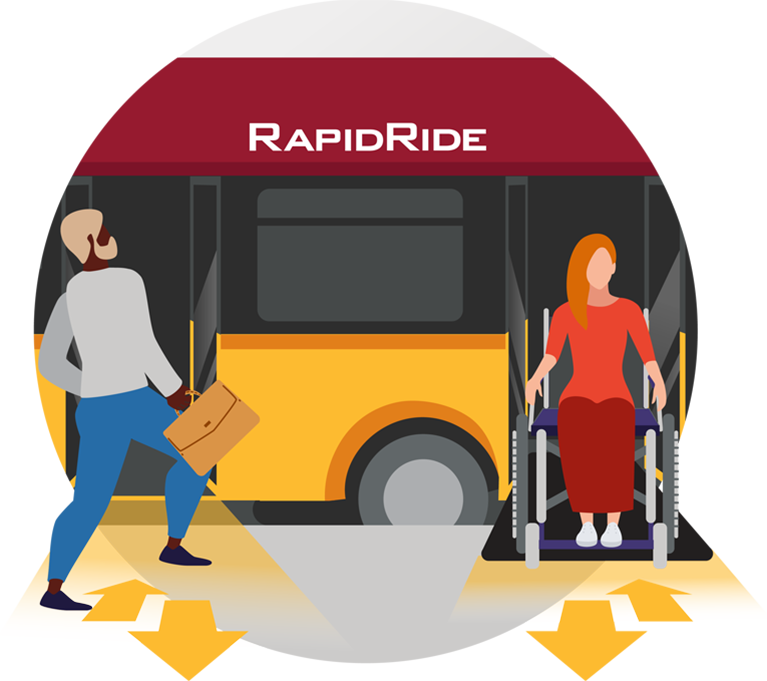 享受前后门均可上车的乘车方式。在站点或公交车内的任何车门处,均可轻触您的 ORCA 卡即可付费乘车。
